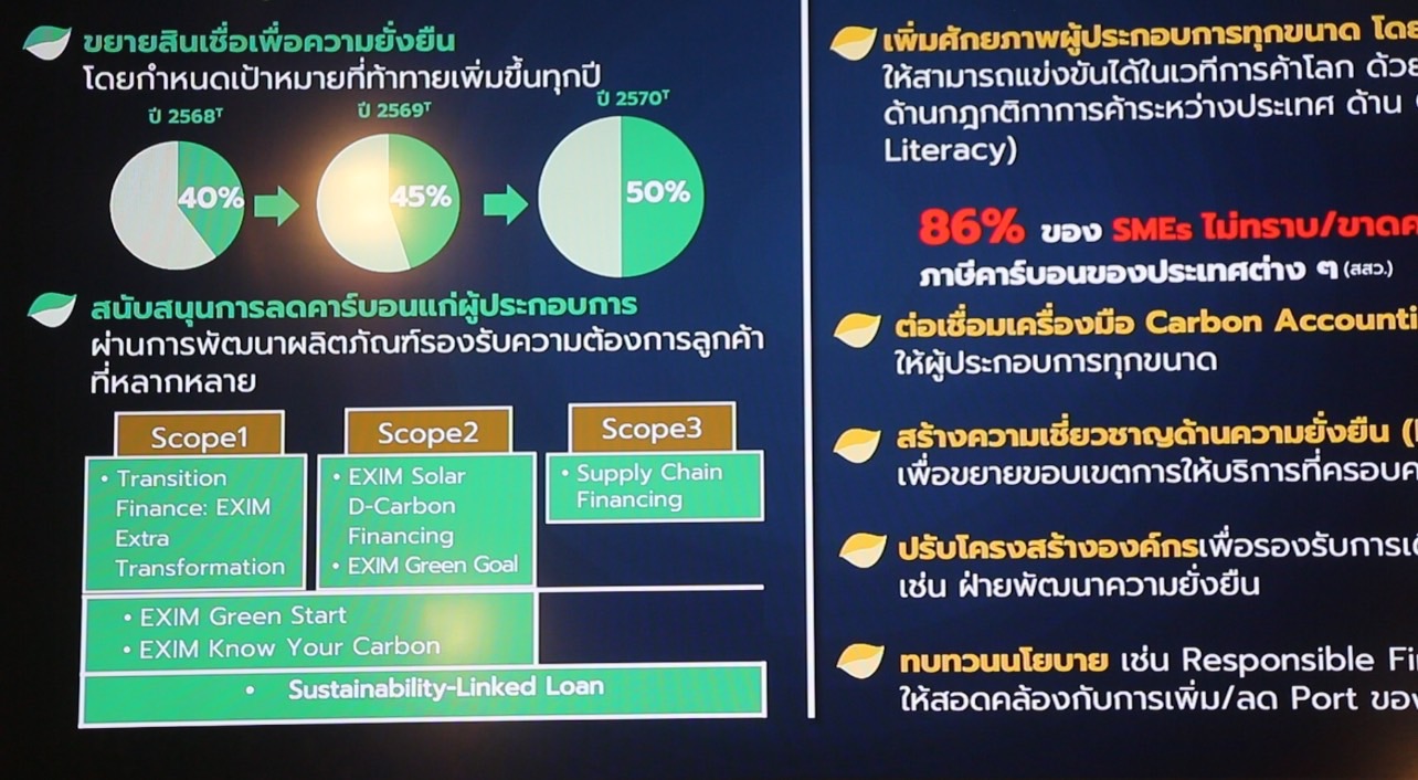 EXIM BANK นำผู้ประกอบการไทยฝ่ามรสุม ทรัมป์ 2.0 พัฒนาระบบนิเวศ Green Export Supply Chain พร้อมเป็นที่ปรึกษาทางการเงิน สร้างนักรบเศรษฐกิจสีเขียวในตลาดการค้าโลก