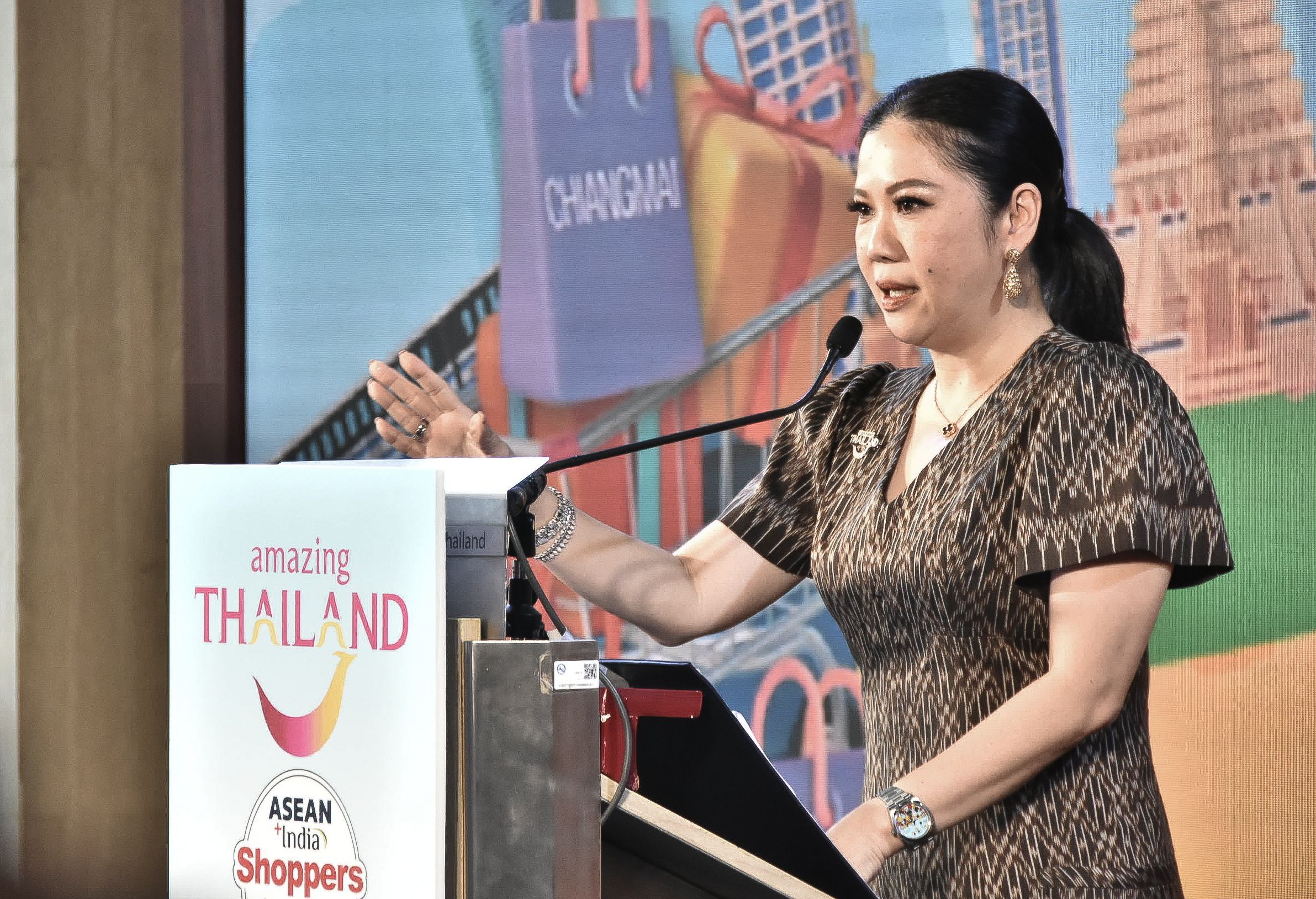 นางสาวฐาปนีย์ เกียรติไพบูลย์ ผู้ว่าการการท่องเที่ยวแห่งประเทศไทย ททท. กล่าวว่า โครงการ ASEAN + INDIA SHOPPERS IN THAILAND 2025 ถือเป็นหนึ่งในโครงการใหญ่ในปี Amazing Thailand Grand Tourism and Sports Year 2025 ที่ ททท. พร้อมมอบประสบการณ์เหนือระดับและสิทธิประโยชน์การท่องเที่ยวให้แก่นักท่องเที่ยวผ่านแคมเปญทางการตลาด (Grand Privilege) เพื่อรุกตลาดนักท่องเที่ยวกลุ่มอาเซียน (สปป.ลาว กัมพูชา เวียดนาม มาเลเซีย สิงคโปร์ ฟิลิปปินส์ อินโดนีเซีย บรูไน เมียนมา) และอินเดีย กระตุ้นการใช้จ่ายและการเดินทางซ้ำของนักท่องเที่ยวกลุ่มตลาดอาเซียนและอินเดีย ซึ่งถือเป็นกลุ่มตลาดขนาดใหญ่กว่าหนึ่งในสามของนักท่องเที่ยวที่เดินทางเข้าประเทศไทยทั้งหมดในปี 2567 และยังมีแนวโน้มในการเติบโตสูง รวมถึงเป็นกลุ่มนักท่องเที่ยวคุณภาพที่พร้อมจับจ่ายใช้สอยสินค้าและบริการต่าง ๆ ในประเทศไทย โดยนักท่องเที่ยวกลุ่มนี้มีพฤติกรรมเดินทางซ้ำเข้าสู่ประเทศไทยสูงถึงร้อยละ 72 โดยการดำเนินโครงการครั้งนี้ ททท. ได้ร่วมกับพันธมิตรและผู้ประกอบการแบรนด์ชั้นนำ (Partnership 360 องศา) มอบสิทธิพิเศษให้แก่นักท่องเที่ยวกลุ่มตลาดอาเซียนและอินเดีย