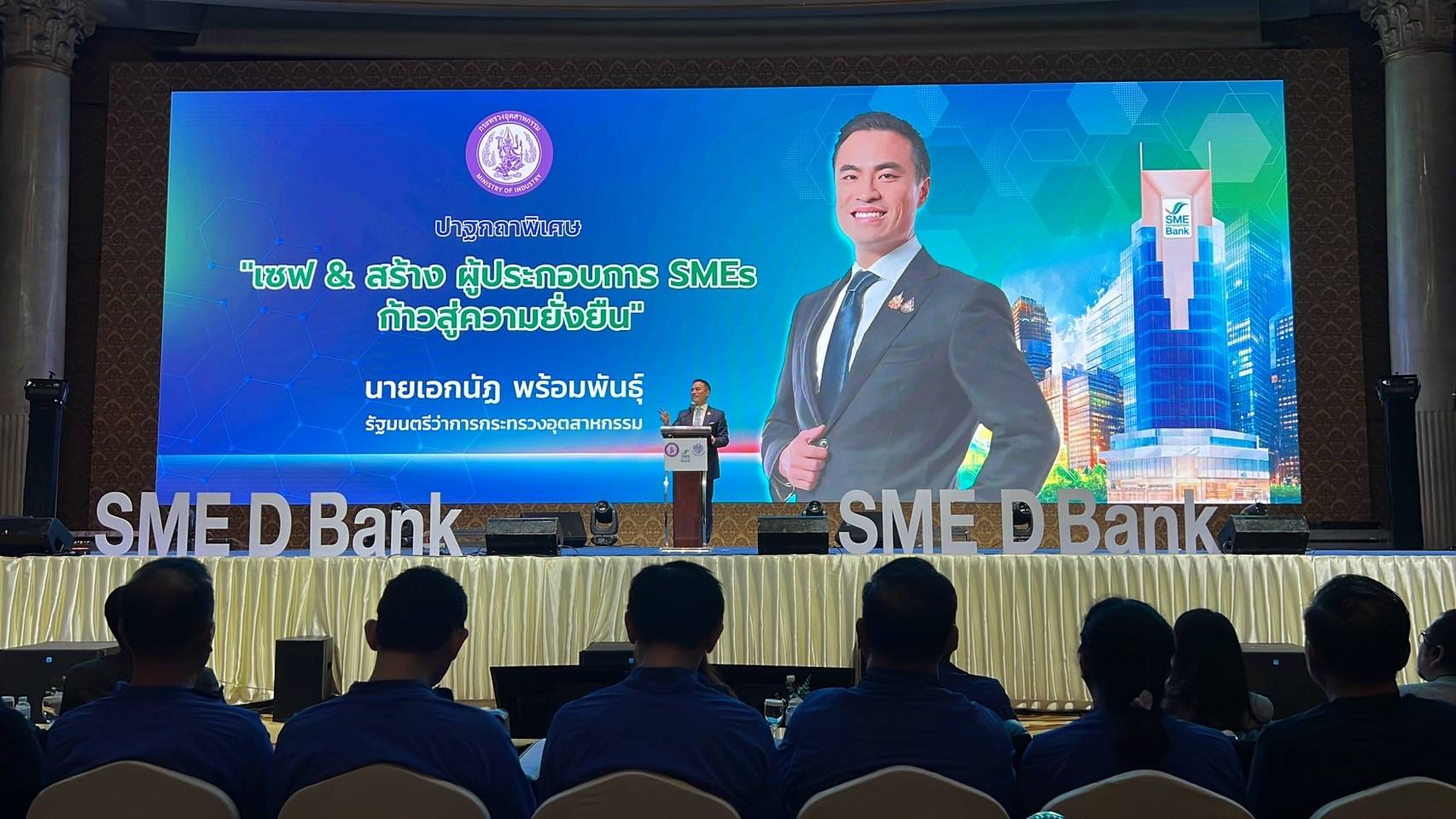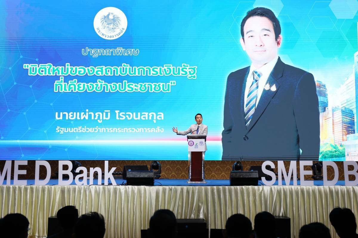 นายเผ่าภูมิ โรจนสกุล รัฐมนตรีช่วยว่าการกระทรวงการคลัง กล่าวว่า ด้วยสถานการณ์เศรษฐกิจที่กำลังอยู่ในช่วงฟื้นตัว ขณะเดียวกันปัญหา "หนี้" ในระบบเศรษฐกิจไทยที่ยังอยู่ในระดับสูงต่อเนื่อง โดยเฉพาะหนี้ครัวเรือน เป็นตัวฉุดให้การฟื้นตัวของเศรษฐกิจให้เป็นไปได้อย่างล่าช้า รวมถึง ปัญหาด้านความปลอดภัยทางไซเบอร์ ส่งผลต่อความเชื่อมั่นของผู้บริโภคที่ใช้บริการทางการเงินด้วย ปัจจัยเหล่านี้ ล้วนมีส่วนให้เอสเอ็มอีเข้าถึงแหล่งทุนในระบบได้ยาก SME D Bank สถาบันการเงินของรัฐ จึงมีบทบาทสำคัญที่ต้องเข้ามารับภาระเคียงข้างช่วยเหลือเอสเอ็มอี ด้วยการสร้างมิติใหม่ในการทำงานที่ต้อง "เข้าใจ" ยึดตัวผู้ประกอบการเอสเอ็มอีเป็นศูนย์กลาง เข้าใจถึงสถานการณ์ และปัจจัยแวดล้อม เพื่อจะตอบสนองความต้องการได้อย่างถูกต้อง รวมถึง "เข้าถึง" พัฒนาเทคโนโลยีทางการเงิน ช่วยให้เข้าถึงบริการทางการเงินได้สะดวกและทันสมัย และ "พัฒนา" สนับสนุนเพิ่มขีดความสามารถการแข่งขัน ปรับตัวทางธุรกิจให้อยู่รอดและยืนหยัดเดินหน้าต่อไปได้ เมื่อเอสเอ็มอีเข้มแข็ง จะส่งผลดีต่อเศรษฐกิจโดยรวมของประเทศตามไปด้วย