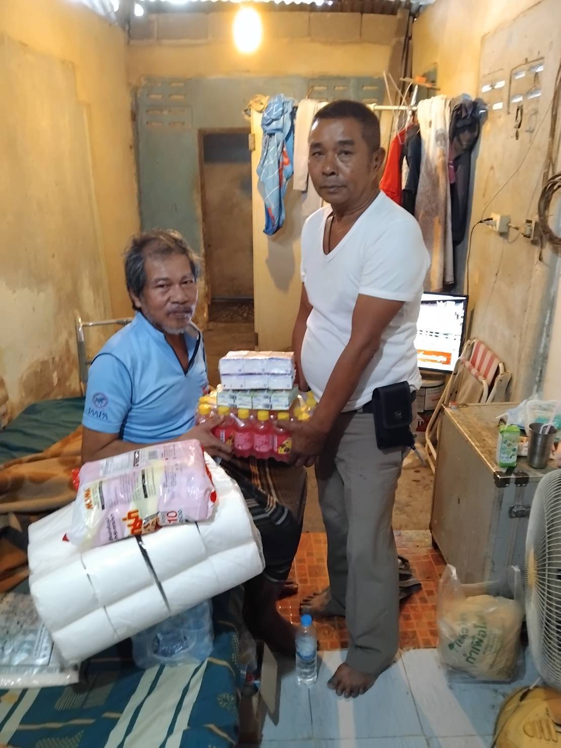 ร.ต.ท.ก้องภพ สระน้อย รองสว.(ป) สน.บางชัน ได้รับข้าวสาร ,อาหารแห้ง และเครื่องอุปโภค บริโภค จากพระครูกฤษณะ กิตุติภทุโท วัดราษฏร์ศรัทธาธรรม(วัดบางชัน) แขวงบางชัน เขต คลองสามวา กรุงเทพฯ เพื่อมอบให้ผู้ป่วย 2 ครอบคร้ว