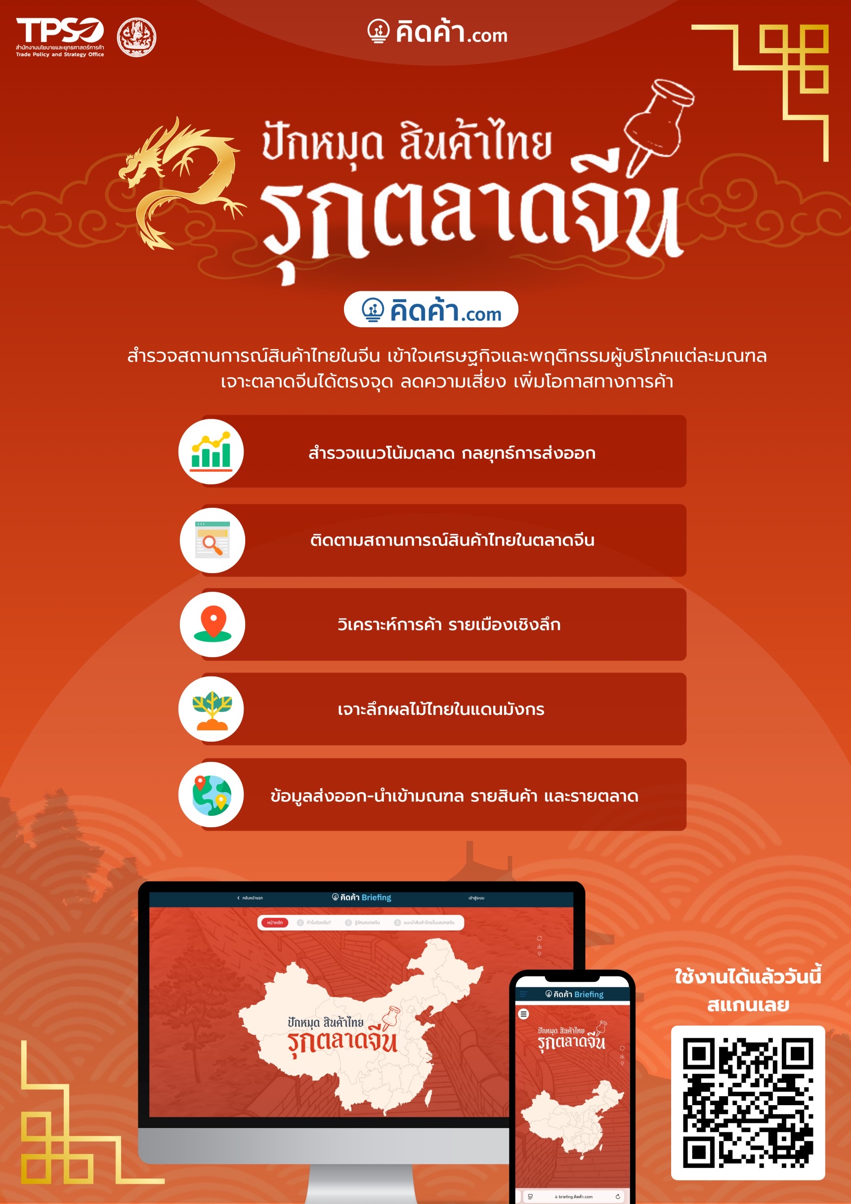 สนค. เปิดบริการใหม่ “คิดค้า Briefing: ปักหมุดสินค้าไทยรุกตลาดจีน”