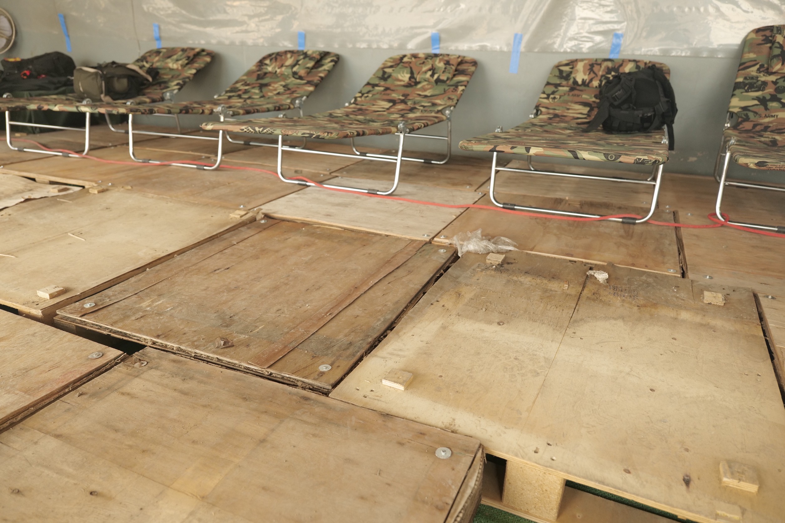 และช่วงที่ฝนตกน้ำจะท่วมขังทำให้การเข้าถึงจุดเสี่ยงต่าง ๆ เป็นไปด้วยความลำบาก จึงนำแผ่นรองเครื่องจักรกว่า 100 แผ่น มาหนุนให้สูง เพื่อให้การทำงานปลอดภัยและสามารถนอนพักผ่อนได้ อย่างไม่ต้องกังวล