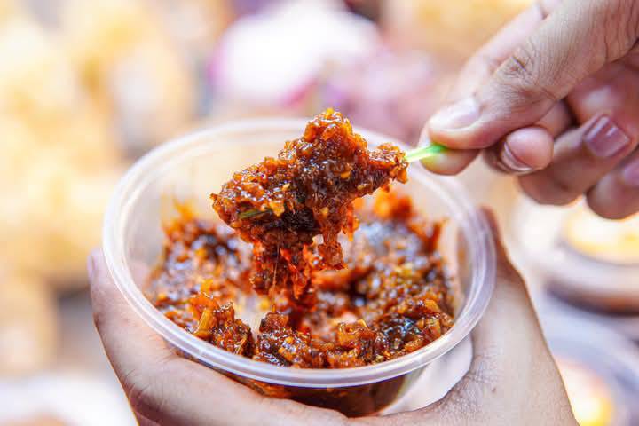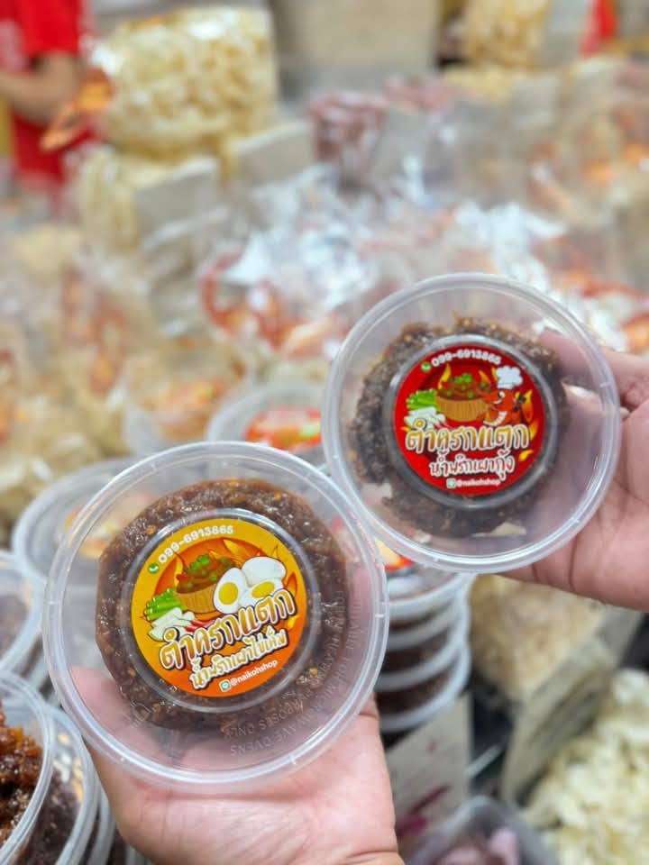 นอกจากนี้ ทางร้านยังมี “น้ำพริกเผากุ้ง” และ “น้ำพริกเผาไข่เค็ม” สูตรเข้มข้น หอมมัน จิ้มกินกับข้าวเกรียบแล้วอร่อยเหาะ! เพิ่มมิติความแซ่บให้ของว่างธรรมดากลายเป็นเมนูสุดเพลิน