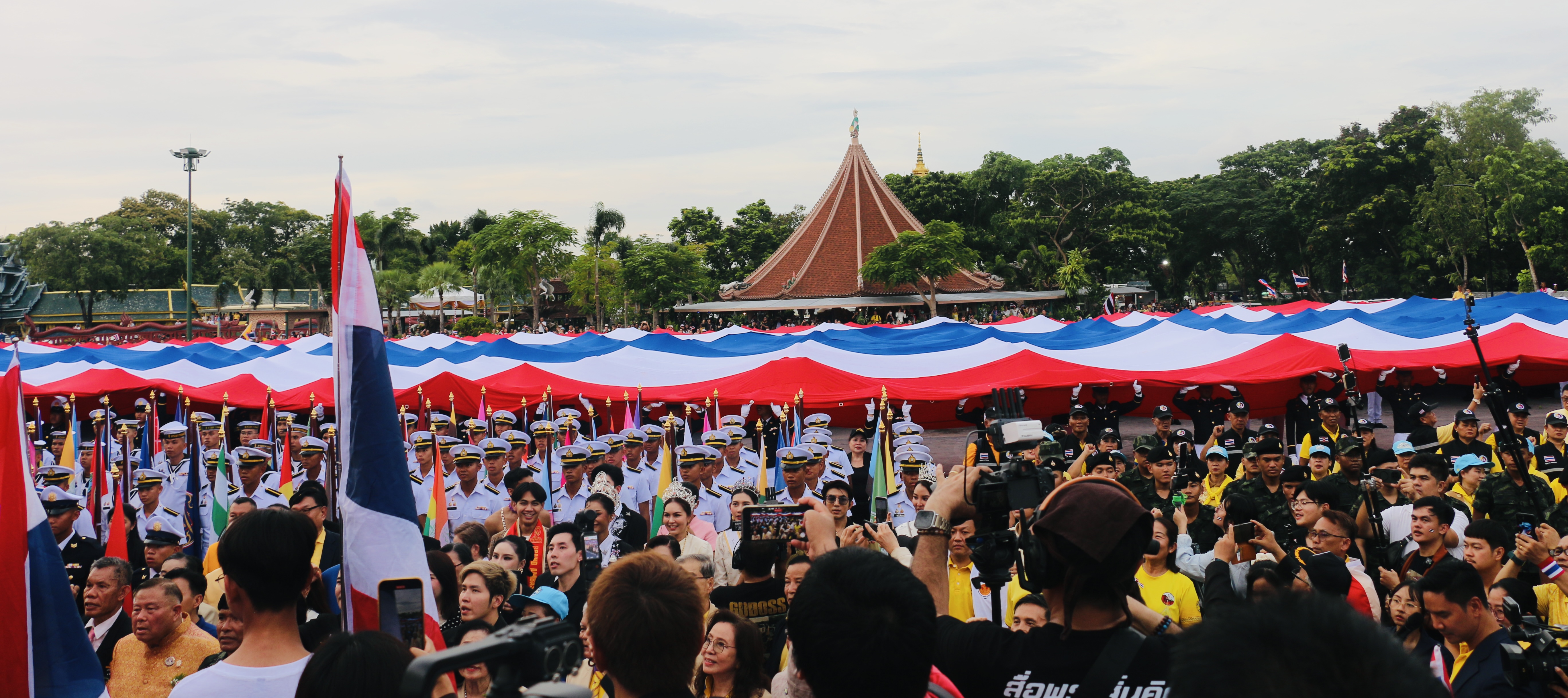 สมุทรปราการ : คนไทยนับหมื่น รวมพลคนรักชาติ ชูธงไทยใหญ่ที่ในโลก