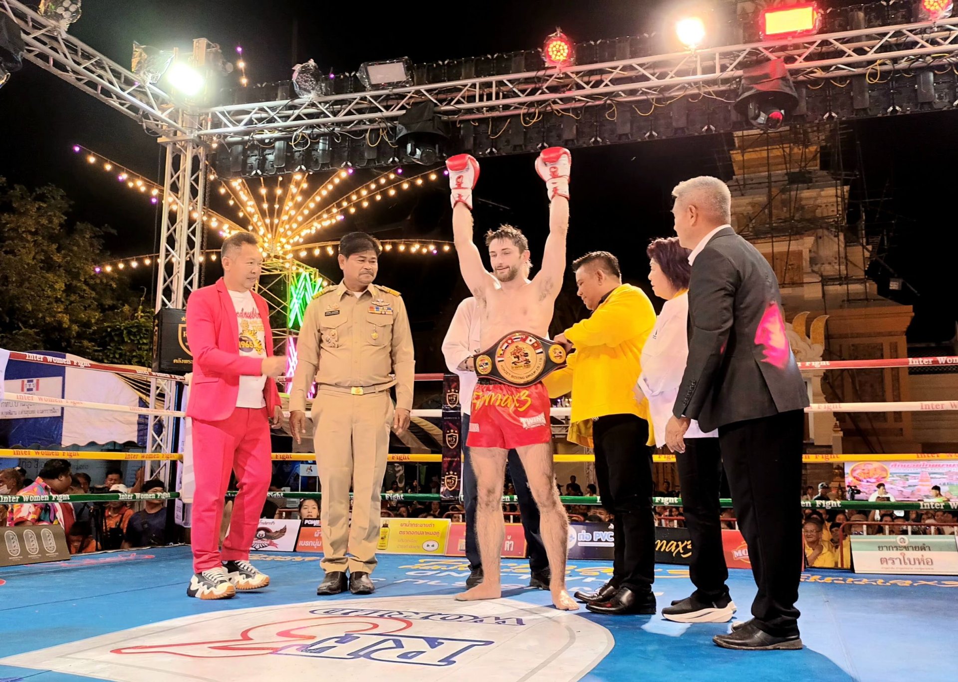 - คู่ที่ 3 ชิงแชมป์มวยไทยนานาชาติรุ่น 70 กก.ทาโร่ เข้มมวยไทย นักชกชาวญี่ปุ่นปะทะ ทันชุนยิน ตุ๋ยศิษย์ธรณี จากฮ่องกงคู่นี้ทาโร่ถึงเสียเปรียบรูปร่างแต่เดินหน้าออกอาวุธตลอด 3 ยกแต่ทันชุนยิน เป็นมวยจังหวะฝีมือออกแข้งดักเข้าชายโครงสลับหมัดเข้าลำตัวได้ชัดเจนกว่ากรรมการชูมือให้ ทันชุนยิน ตุ๋ยศิษย์ธรณี คว้าแชมป์ไปครอง