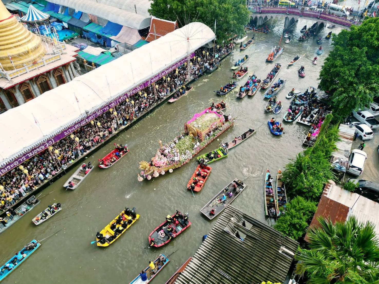 มุมสูง สุดคึกคัก คนนับหมื่นตลอดสองฝั่งคลองร่วมงานประเพณีรับบัวหนึ่งเดียวในโลก สืบสานวิถีกว่า 100 ปี