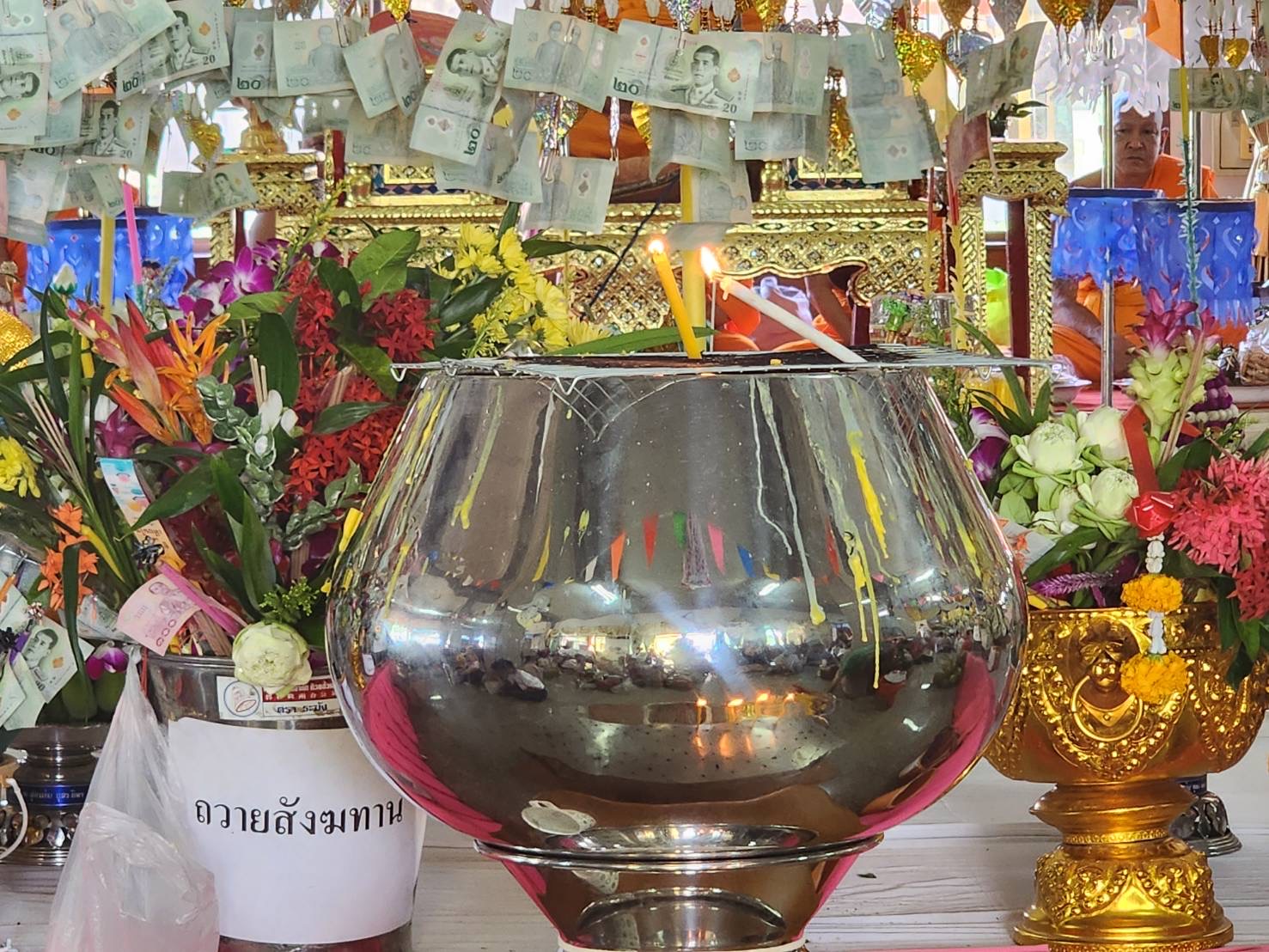 โดยวันนี้บรรยากาศเป็นไปด้วยความคึกคัก มีพุทธศาสนิกชน อุบาสก อุบาสิกา ที่ได้นุ่งขาวห่มขาวถือศีล 8 มาร่วมปฏิบัติธรรมและรับฟังธรรมเทศนา ร่วมถวายภัตตาหารเพลแด่พระคุณเจ้า ถวายกัณฑ์เทศน์
