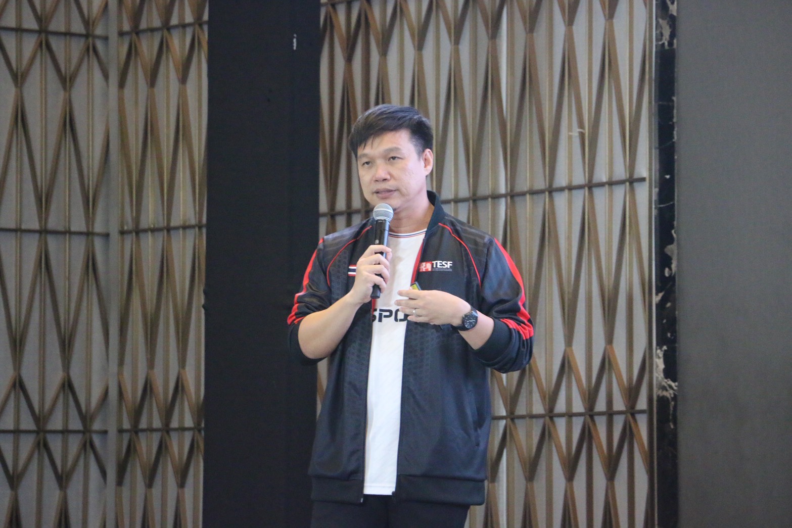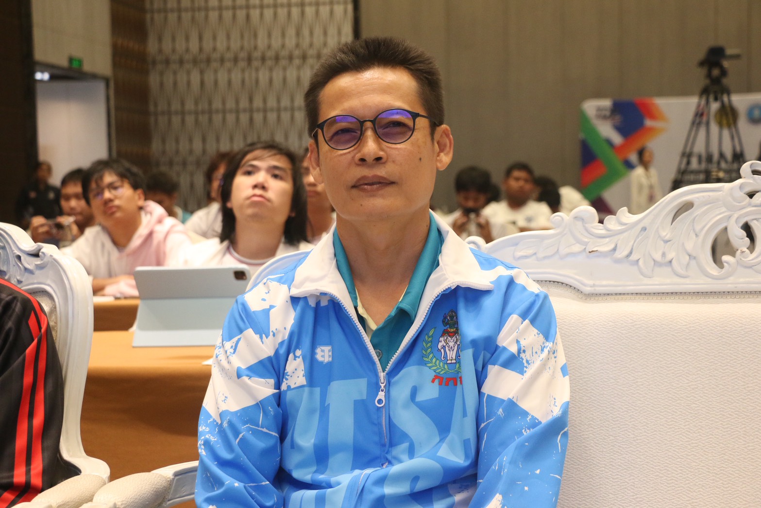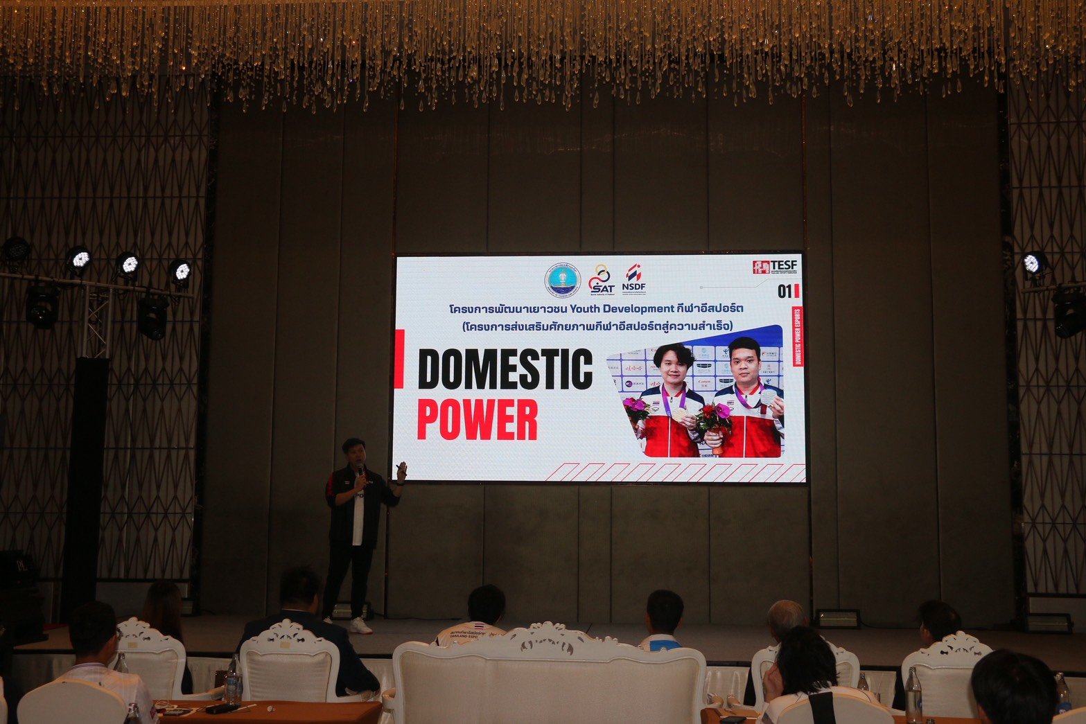 นายวิทยา แสงอนันต์ โค้ชกีฬาอีสปอร์ตทีมชาติไทย เป็นผู้แทนนายสันติ โหลทอง นายกสมาคมกีฬาอีสปอร์แห่งประเทศไทย