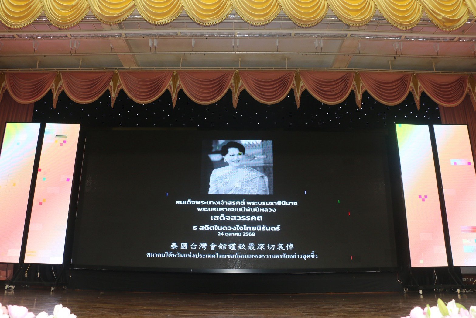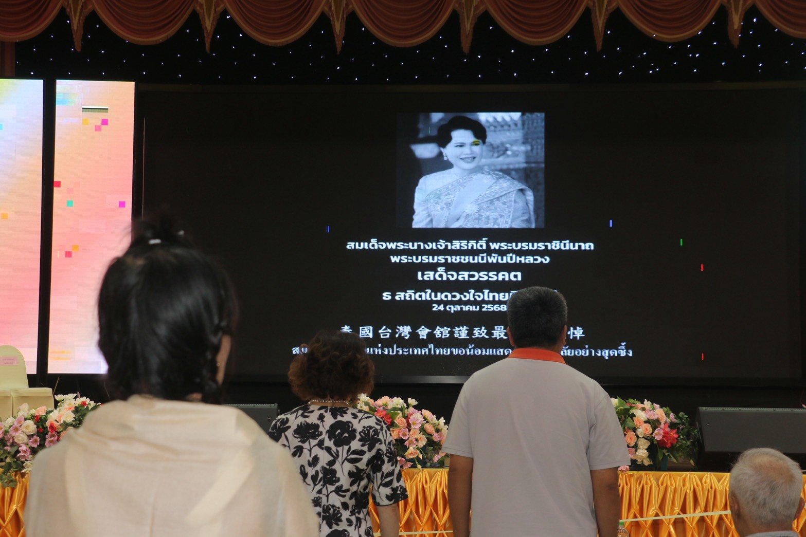 วันนี้ (25ตค68) ดร.บรินดา จางขจรศักดิ์ นายกสมาคมไต้หวันแห่งประเทศไทย นำนักธุรกิจชาวไต้หวันยืนสงบนิ่งไว้อาลัย สมเด็จพระนางเจ้าสิริกิติ์ พระบรมราชินีนาถ พระบรมราชชนนีพันปีหลวง สวรรคต 24 ตค 68 ก่อนเปิดงานเทศกาลกินเจ อิ่มกาย สุขใจ ที่ทางสมาคมไต้หวันแห่งประเทศไทย จัดขึ้นระหว่าง 25-26 ตค 68 ณ.หอประชุมสมาคมไต้หวันแห่งประเทศไทย ถ.สุขุมวิท อ.เมืองสมุทรปราการ