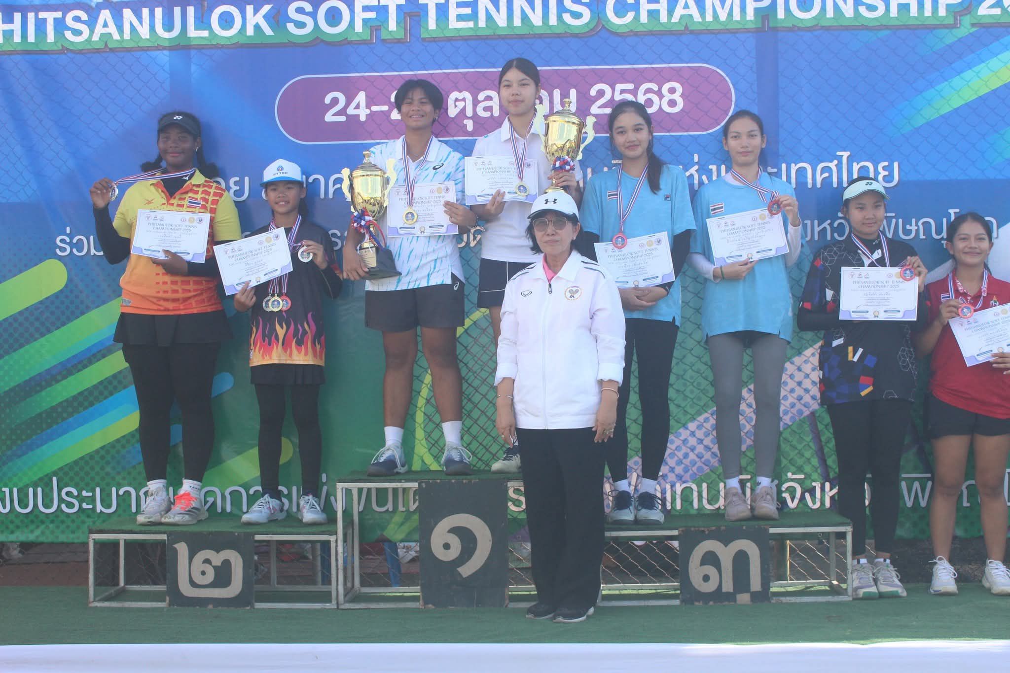 , นางสุภาพร นาคนาคา กรรมการบริหารสมาคมฯ และพันตำรวจเอกวรเชษฐ์ พลขันธ์ ที่ปรึกษาชมรมซอฟท์เทนนิสพิษณุโลก ให้เกียรติขึ้นมอบเหรียญรางวัล , ถ้วยรางวัล และประกาศนียบัตรแก่น้องๆนักกีฬาที่ได้รับรางวัลก่อนที่นางอุดมลักษณ์ ศิริกุลเลิศรัฐ นายกสมาคมกีฬาซอฟท์เทนนิสแห่งประเทศไทย จะกล่าวขอบคุณนักกีฬา ผู้ปกครอง , ผู้ตัดสิน และฝ่ายจัดการแข่งขันตลอดจนทุกภาคส่วนของเจ้าภาพจังหวัดพิษณุโลกที่ช่วยกันทำงานรายการนี้จนบรรลุวัตถุประสงค์ พร้อมกล่าวเชิญชวนนักกีฬาให้เข้าร่วมการแข่งขันซอฟท์เทนนิสกีฬาระหว่างโรงเรียน กรมพละศึกษา ในระหว่างวันที่ 29 - 30 พ.ย.68 และอีกหนึ่งรายการใหญ่ในรายการระดับนานาชาติ ระหว่างวันที่ 16 - 21 ธ.ค.68 ทั้งสองรายการแข่งขันที่สนามเทนนิสมหาวิทยาลัยเทคโนโลยีราชมงคลธัญบุรี คลองหก จ.ปทุมธานี นายกสมาคมกล่าวทิ้งท้าย