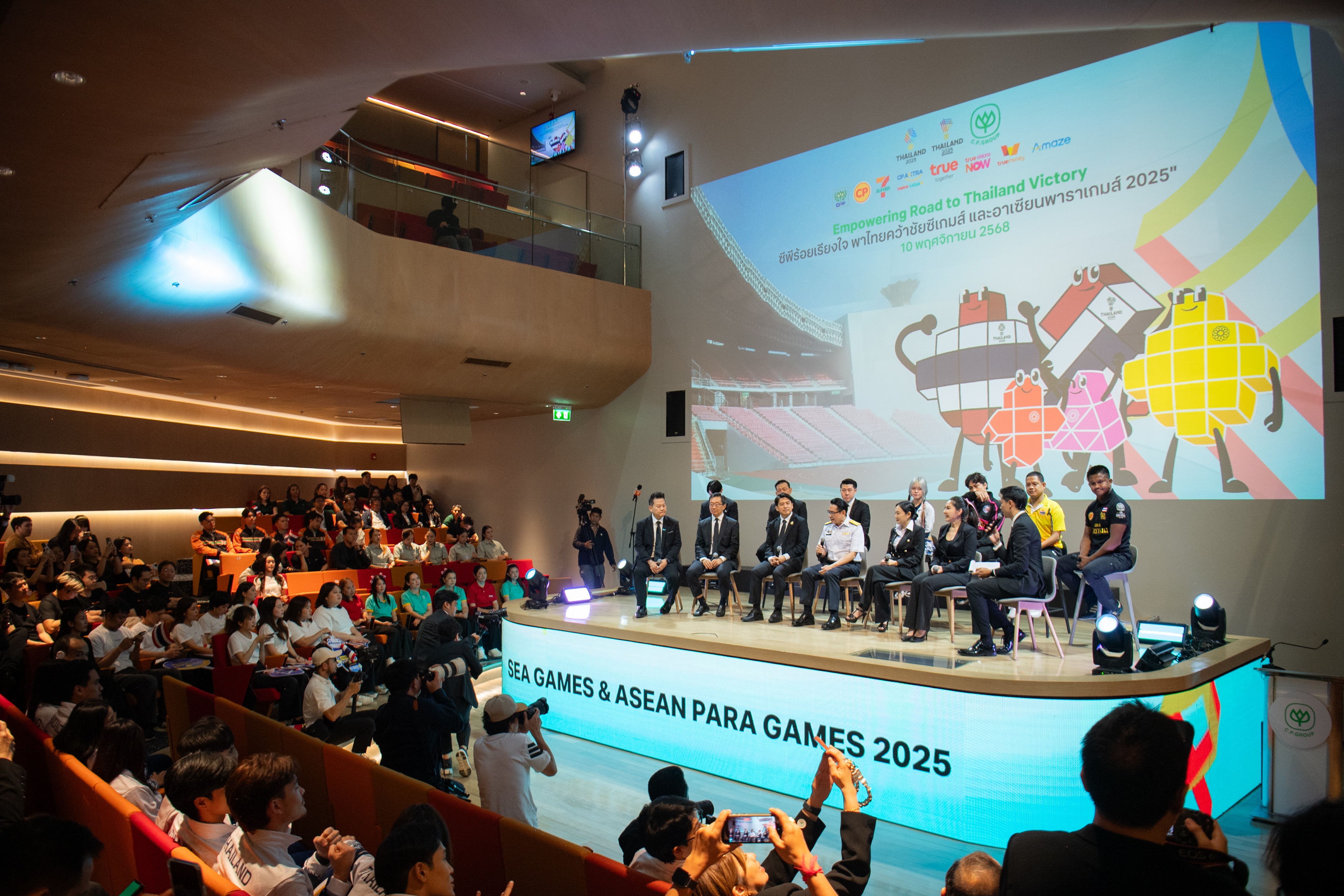 กรุงเทพฯ, 10 พฤศจิกายน 2568 - เครือเจริญโภคภัณฑ์ หรือ ซีพี พร้อมบริษัทในเครือ ได้แก่ ซีพีเอฟ, ซีพี ออลล์, ซีพี แอ็กซ์ตร้า, ทรู คอร์ปอเรชั่น, ทรูวิชั่นส์, ทรูมันนี่ และอเมซ (Amaze Super App) ประกาศทุ่มงบกว่า 100 ล้านบาท สนับสนุนการกีฬาแห่งประเทศไทย (กกท.) ในการจัดการแข่งขัน ซีเกมส์ และอาเซียนพาราเกมส์ 2025 ที่ประเทศไทยเป็นเจ้าภาพ ตอกย้ำบทบาทของภาคเอกชนไทยที่มีนโยบายสนับสนุนด้านการกีฬามาอย่างต่อเนื่อง ซึ่งในโอกาสนี้ได้รวมพลังจาก 7 กลุ่มธุรกิจในเครือ จัดงาน “ซีพี ร้อยเรียงใจ พาไทยคว้าชัย ซีเกมส์ และอาเซียนพาราเกมส์ 2025” ณ ห้องออดิทอเรียม ทรู ดิจิทัล พาร์ค ทั้งนี้ ได้รับเกียรติจาก ดร.ก้องศักด ยอดมณี ผู้ว่าการการกีฬาแห่งประเทศไทย ร่วมในการ Kick off ครั้งสำคัญของซีพีและบริษัทในเครือ โดยมี ดร.ธีระพล ถนอมศักดิ์ยุทธ ประธานคณะผู้บริหารด้านความยั่งยืนองค์กรและการพัฒนากลยุทธ์ เครือเจริญโภคภัณฑ์ และผู้บริหารจากกลุ่มธุรกิจต่าง ๆ ในเครือฯ ได้แก่ นางสาวอนรรฆวี ชูรัตน์ ผู้บริหารสูงสุด สายงานการตลาดกลาง บริษัท เจริญโภคภัณฑ์อาหาร จำกัด (มหาชน), นายสุชาติ วัฒนา ผู้ช่วยกรรมการผู้จัดการ สายงานการตลาด บริษัท ซีพี ออลล์ จำกัด (มหาชน), นางศิริพร เดชสิงห์ ประธานเจ้าหน้าที่บริหาร สายงานความยั่งยืนและสื่อสารองค์กร บริษัท ซีพี แอ็กซ์ตร้า จำกัด (มหาชน), นายโอลิเวอร์ กิตติพงษ์ วีระเตชะ หัวหน้าคณะผู้บริหารด้านแบรนด์และมีเดีย บริษัท ทรู คอร์ปอเรชั่น จำกัด (มหาชน), นายองอาจ ประภากมล หัวหน้าผู้บริหาร หน่วยงานทรูวิชั่นส์ และมีเดีย บริษัท ทรู คอร์ปอเรชั่น จำกัด (มหาชน), นายกรกฤต เมฆบุญส่งลาภ ผู้อำนวยการฝ่ายความสำเร็จทางธุรกิจของพันธมิตร บริษัท ทรูมันนี่ จำกัด และ นายภูมิชนัตถ์ เรืองชัยนันท์ ประธานเจ้าหน้าที่บริหารฝ่ายกลยุทธ์และข้อมูล Amaze Super App ร่วมกันประกาศการเป็น Group Main Sponsor ในมหกรรมกีฬาที่ยิ่งใหญ่ของภูมิภาค “ซีเกมส์ และอาเซียนพาราเกมส์ 2025” พร้อมแสดงเจตนารมณ์ในการสนับสนุนการแข่งขัน ทั้งด้านอาหาร โครงสร้างพื้นฐานด้านดิจิทัลและการสื่อสารครอบคลุมทุกพื้นที่การแข่งขัน ระบบการเงินอัจฉริยะ ช่องทางการถ่ายทอดสดตลอดการแข่งขัน และบริการต่าง ๆ เพื่อสนับสนุนประเทศไทยในการเป็นเจ้าภาพการแข่งขันซีเกมส์และอาเซียนพาราเกมส์อย่างสง่างาม พร้อมเชิญชวนคนไทยทั้งประเทศร่วมเชียร์ และส่งกำลังใจให้ทัพนักกีฬาไทย คว้าชัยชนะในซีเกมส์และอาเซียนพาราเกมส์