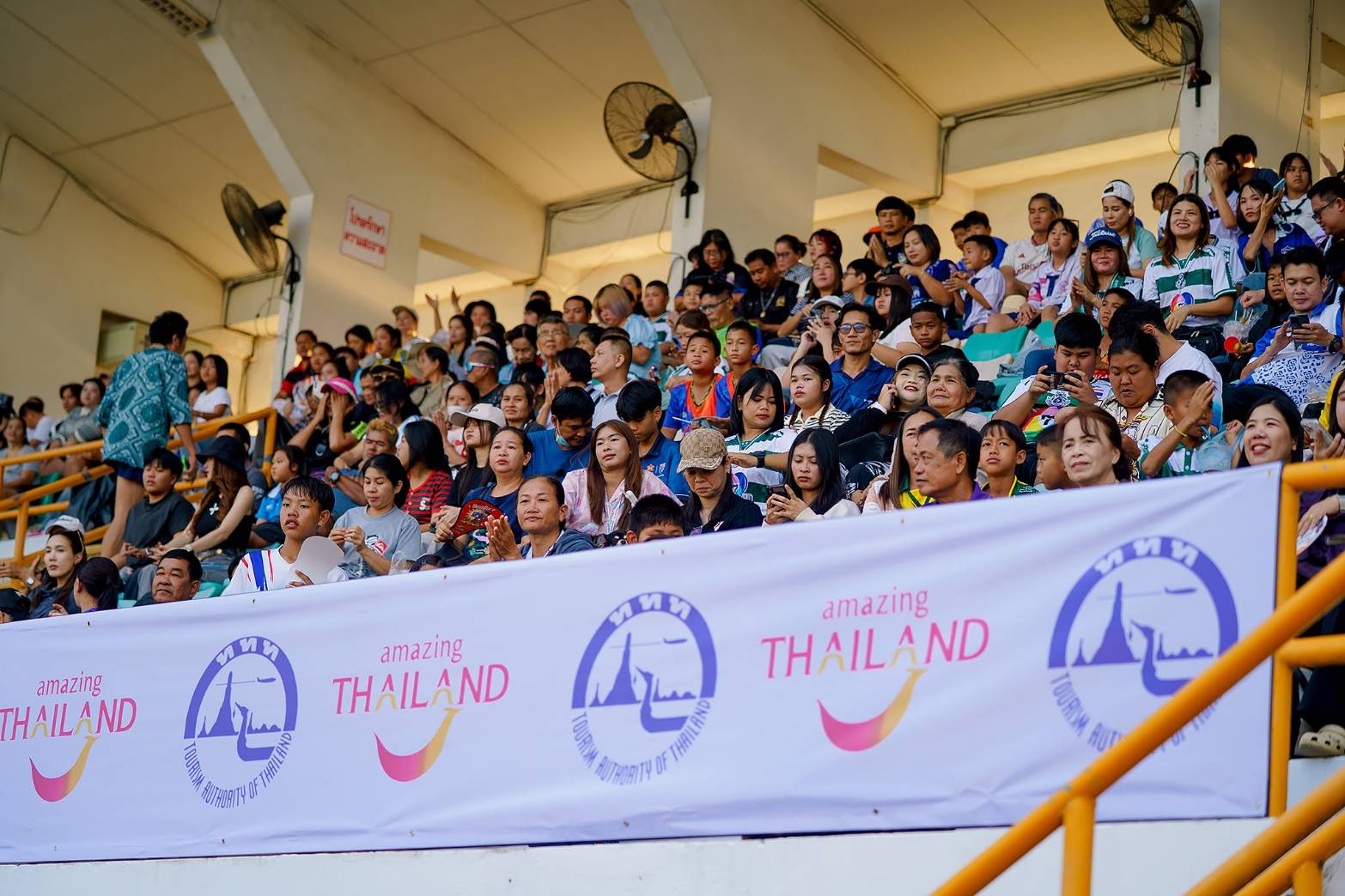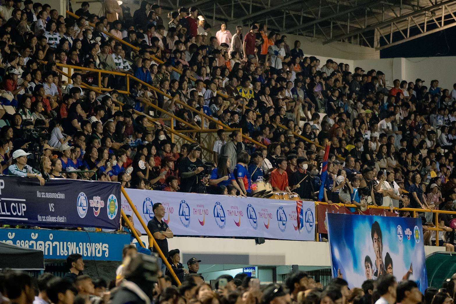 เสียงเชียร์ดังกระหึ่มเมื่อนักเตะลงสู่สนาม แฟนบอลถึงกับต้องลงมานั่งติดขอบสนามเพื่อชมความมันส์!