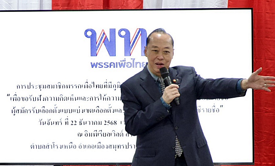 วันที่ 22 ธันวาคม 2568 เวลา 10.00 น.ที่บริเวณ ชั้น 6 อิมพีเรียลเวิลด์ สำโรง ตำบลสำโรงเหนือ อำเภอเมืองสมุทรปราการ จังหวัดหวัดสมุทรปราการ พรรคเพื่อไทย จังหวัดสมุทรปราการ ได้มีการจัดประชุมสมาชิกเพื่อรับฟังความเห็นและให้ความเห็นชอบว่าที่ผู้สมัคร สส. ทั้งแบบแบ่งเขต (ครบ 8 เขต) และแบบบัญชีรายชื่อ ซึ่งมีผู้นำพรรคอย่าง นายสงคราม กิจเลิศไพโรจน์ อดีต รมช.พาณิชย์ ร่วมเปิดผู้เสนอตัวลงสมัครรับเลือกตั้งเป็นสมาชิกสภาผู้แทนราษฎร จังหวัดสมุทรปราการ แบบแบ่งเขตเลือกตั้งจำนวน 8 คน ประกอบด้วย นายอัครวัฒน์ อัศวเหม, นายยงยุทธ สุวรรณบุตร, นายภิญโญ กิจเลิศไพโรจน์, นายกรวัฒน์ หันประดิษฐ์, นายปิยะพงษ์ เหมะ, นางสาวนฤมล ธารดำรงค์, นายประชา ประสพดี และ นางสาวสลิลทิพย์ สุขวัฒน์ และยังมีผู้ประสงค์ลงสมัคร สส. ในระบบบัญชีรายชื่อด้วยอีก 3 คน ซึ่งทั้งหมดเป็นบุคคลากรที่ทำงานในพื้นที่อย่างเข้มแข็ง เข้าร่วมประชุม พร้อมยืนยันความพร้อมในการเลือกตั้งครั้งใหม่ โดยมีเป้าหมายพัฒนาสมุทรปราการและนำความหวังกลับคืนสู่ประชาชน