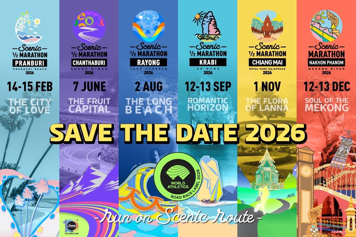 เตรียมพบกับสนามแรกในปี 2569 ณ ชายหาดปราณบุรี จังหวัดประจวบคีรีขันธ์ ในวันที่ 1-2 กุมภาพันธ์ และติดตามรายละเอียดเพิ่มเติมได้ที่ Facebook : Scenic Marathon หรือในกลุ่มคอมมูนิตี้ Scenic Marathon เพื่อรับข่าวสารก่อนใคร