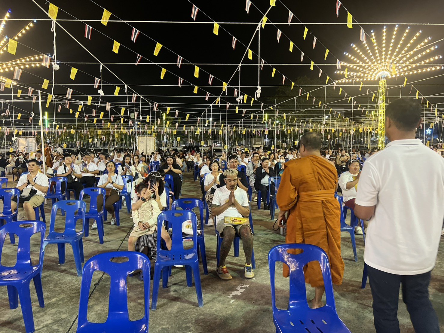บรรยากาศคืนวันที่ 31 ธันวาคม 2569 ที่วัดศรีวารีน้อย ตำบลศีรษะจรเข้ใหญ่ อำเภอบางเสาธง จังหวัดสมุทรปราการ พระครูปลัดสุวัฒนกวีคุณ เจ้าคณะตำบลศีรษะจรเข้ใหญ่ เจ้าอาวาสวัดศรีวารีน้อย นำพระสงฆ์ของทางวัด ร่วมพิธีสวดเจริญพระพุทธมนต์ในคืนส่งท้ายปีเก่าต้อนรับปีใหม่ โดยมีพุทธศาสนิกชน ข้าราชการ คณะกรรมการวัด เจ้าหน้าที่ตำรวจ ฝ่ายปกครอง และประชาชนชาวบางเสาธง จำนวน 1,000 คน เข้าร่วมในพิธี โดยเริ่มสวดมนต์ในบทต่างๆตั้งแต่เวลา 22.00 น.และจนถึง 00.09. น.ของวันที่ 1 มกราคม 2569 ผู้ร่วมงานได้ร่วมร้องเพลงชาติไทย เพื่อสดุดีวีรกรรมของบรรดาทหารหาญที่ปกป้องประเทศอย่างเต็มกำลังอีกด้วย