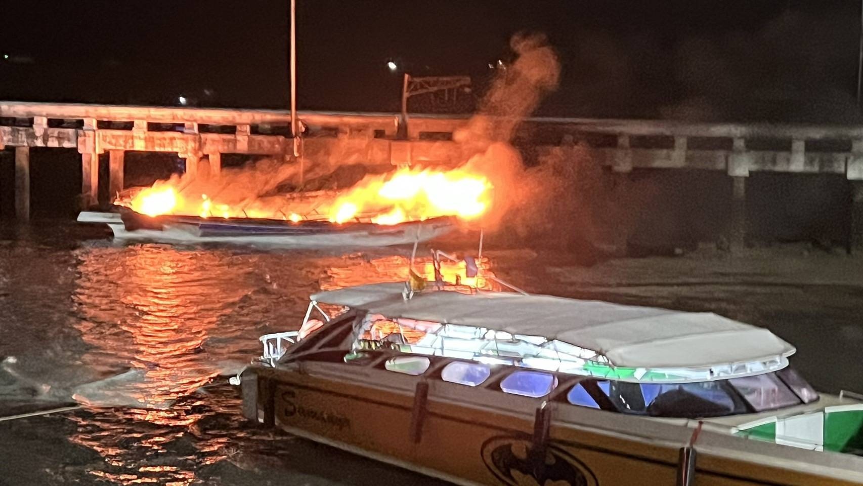 ระทึก!เพลิงไหม้วอดนับสิบลำ เรือสปีดโบ๊ทจอดเทียบท่าอ่าวฉลอง