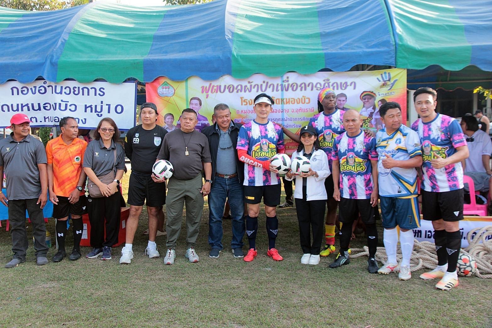 โจอี้ กาน่า , บี๋ สวิช และเพื่อนศิลปินดารา+จิตอาสา รวมพลังชาวบ้านหนองบัว จ.อุทัยธานี จัดฟุตบอลผ้าป่าเพื่อการศึกษา โรงเรียนวัดหนองบัว ต.หนองยาง อ.หนองฉาง จ.อุทัยธานี ระดมยอดผ้าป่าได้ถึง 509,669.94 บาท