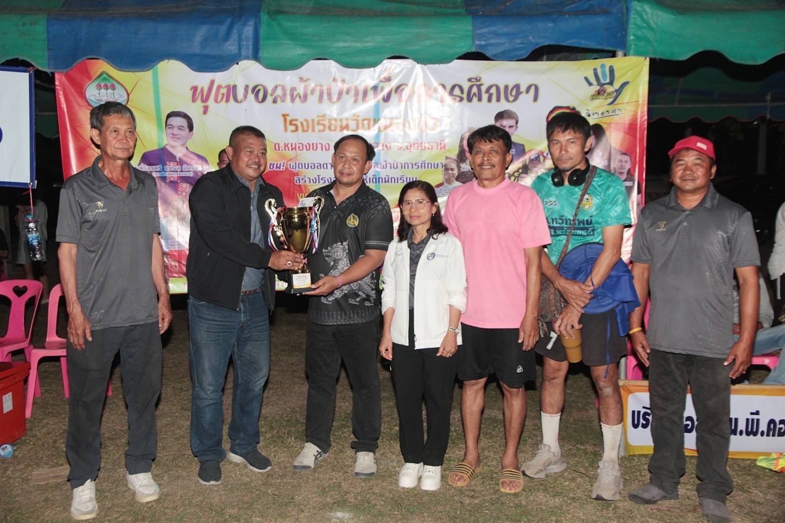 ทั้งนี้นางสาวธารณา เที่ยงพนม ผอ.โรงเรียนวัดหนองบัว และคณะกรรมการขอบพระคุณทีมฟุตบอลทั้ง 6 ทีมที่เข้าร่วมกิจกรรม ตลอดจนผู้สนับสนุนที่ใจดีทุกท่านที่ร่วมสนับสนุนและระดมทุนยอดผ้าป่าเพื่อการศึกษาในกิจกรรมครั้งนี้เป็นเงินทั้งสิ้น 509,669.94 บาท ซึ่งจะได้เร่งดำเนินการจัดสร้างโรงอาหารให้กับนักเรียนได้ใช้ประโยชน์ตามวัตถุประสงค์ทุกประการ