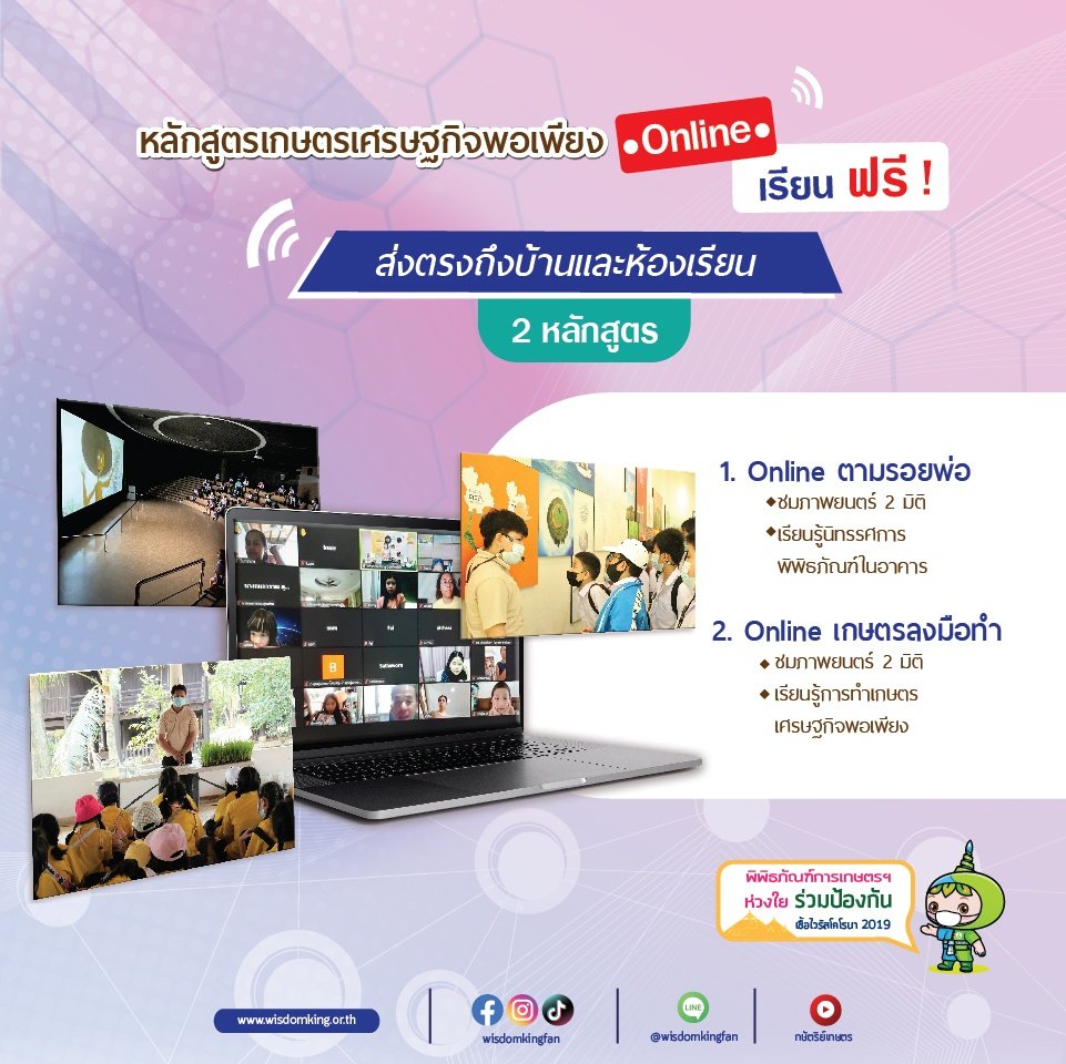 สำนักงานพิพิธภัณฑ์เกษตรเฉลิมพระเกียรติพระบาทสมเด็จพระเจ้าอยู่หัว (องค์การมหาชน) ปรับรูปแบบการดำเนินกิจกรรม เผยแพร่ความรู้ด้านการเกษตรผ่านช่องทางออนไลน์ แบบครบวงจร อัดแน่นด้วยกิจกรรมทั้งทฤษฎีและปฏิบัติ เรียนรู้ได้ทั้งครอบครัว พร้อมตลาดนัดองค์ความรู้ เศรษฐกิจพอเพียงออนไลน์ ช้อปสินค้าเกษตรปลอดภัยกันได้ง่ายๆ แค่ปลายนิ้วในราคาโปรโมชั่นพร้อมจัดส่งถึงบ้าน