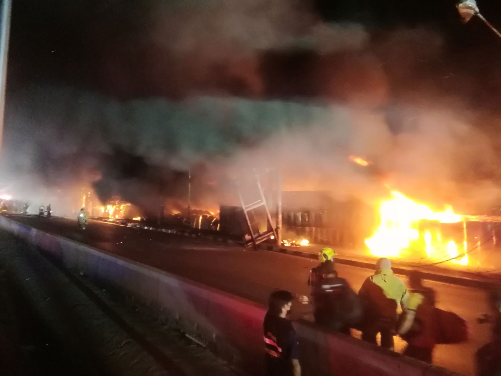 เพลิงไหม้!! โรงงานขายถังพลาสติก ริมถนนพระราม 2 เจ้าหน้าที่ปิดการจราจร พระราม 2 ขาออก