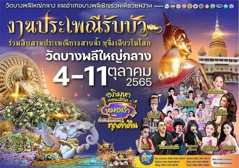 เมื่อเวลา 09.30 น.ของวันเสาร์ที่ 17 กันยายน 2565 ท่านเจ้าคุณพระราชเสนาบดี(จรัล สิริธัมโม)รองเจ้าคณะจังหวัดสมุทรปราการ เจ้าอาวาสวัดบางพลีใหญ่ใน พระอารามหลวง ประธานในพิธีจัดประชุมใหญ่งาน”ประเพณีรับบัว 2565”นับว่าเป็นประเพณีหนึ่งเดียวในโลก แห่งเดียวในประเทศไทย การจัดงานปีนี้ จะจัดขึ้นในวันที่ 3-11 ตุลาคม 2565 วันโยนบัวสักการะองค์หลวงพ่อโต ในวันที่ 9 ตุลาคม 2565 เวลา 07.00 น.ชมขบวนเรือสวยงาม