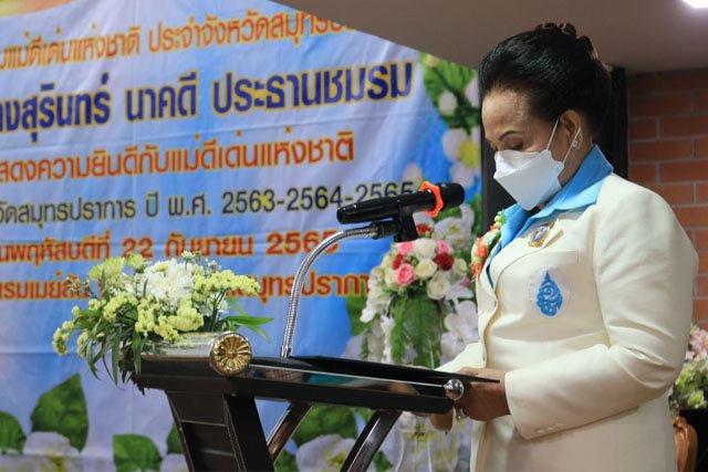 ขณะที่นางสุรินทร์ นาคดี ประธานชมรมแม่ดีเด่นแห่งชาติ ประจำจังหวัดสมุทรปราการ