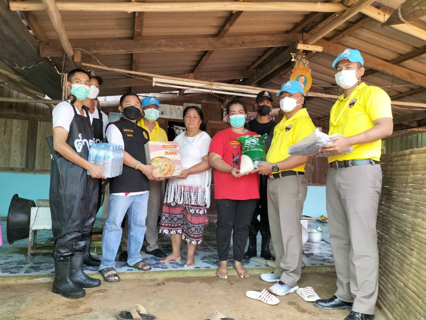 ชาวสวนทุเรียนยืนมองน้ำท่วมสวนทุเรียน ผู้กำกับโรงพักท่าตะเกียบรุดช่วยและให้กำลังใจ