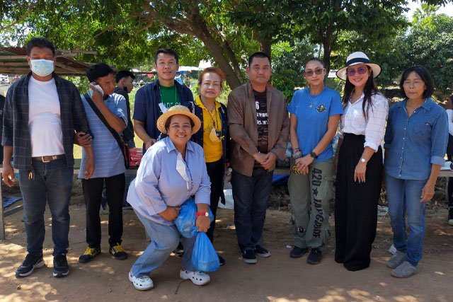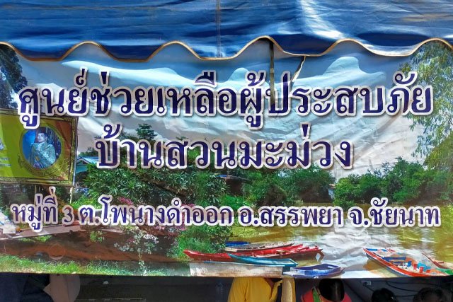 "The English Family" Led by "Mother Kat", the celebrity mom and owner of the hit song OK, "Legend Fever", along with "Heia Nguyen", Mr. Nguyen Teshawaraporn, and a beautiful, rich and kind woman, Mr. Muninthorn Chansirirat, went to Chai Nat and Thachai village, in Muang Chai Nat province and distributed rice and CARE packages to affected people, including the surrounding mango farms.