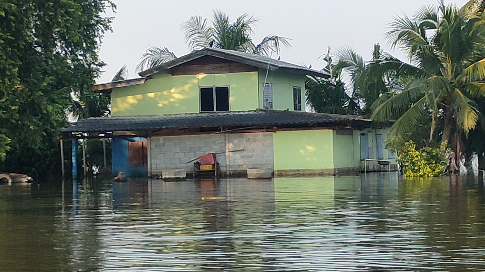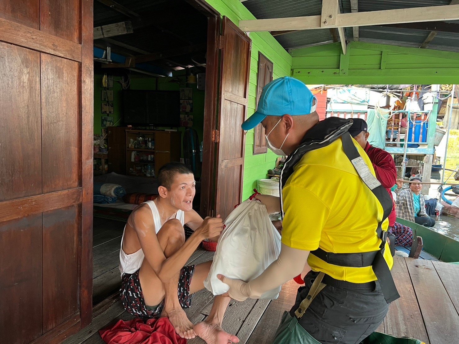 หลังจากนั้นคณะได้ลงเรือท้องแบนเพื่อเดินทางไปมอบถุงยังชีพและให้กับผู้เดือดร้อนที่ระดับน้ำท่วมสูง เดินทางออกมารับด้วยตนเองไม่ได้ พร้อมกับมอบเงินช่วยเหลือผู้พิการและผู้ป่วยติดเตียง ที่ประสบความเดือดร้อน ในพื้นที่หมู่8 บ้านรางเนื้อตาย
