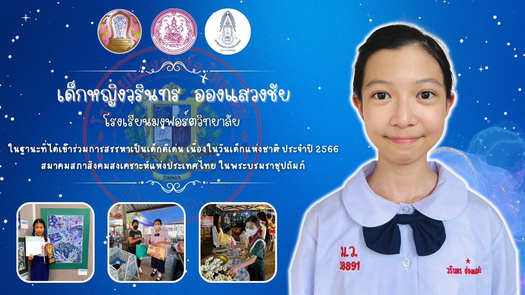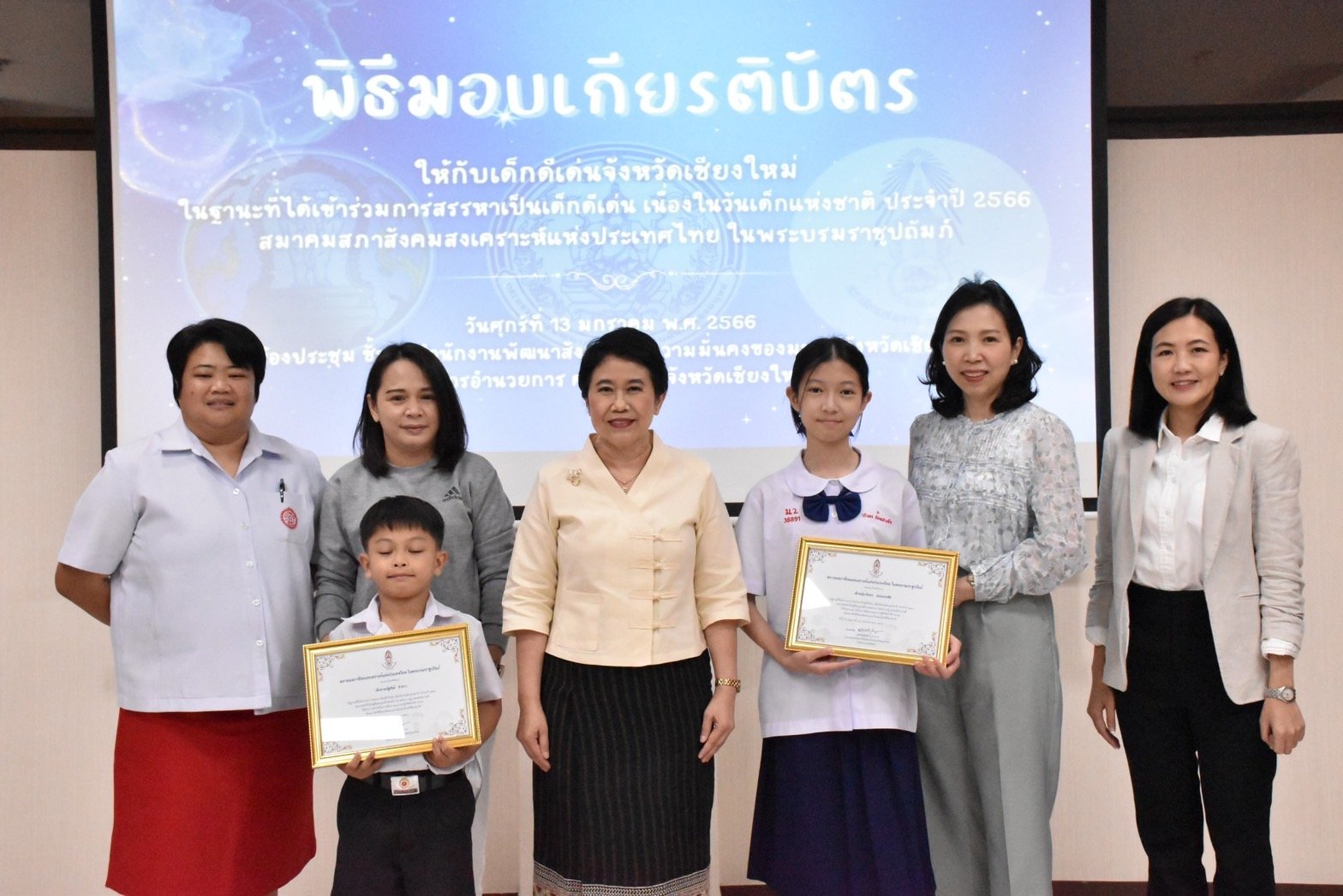 เชียงใหม่ มอบเกียรติบัตรเด็กดีเด่นจังหวัดเชียงใหม่ เนื่องในวันเด็กแห่งชาติ ประจำปี 2566