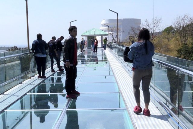 Before going to the glass bridge, you can enjoy the beauty of nature. Visitors will find a long bridge of bound fabrics, which is another place to take photos amidst the lush greenery. The atmosphere resembles a temple in Japan. Once you pass this route, it's a pretty steep climb. Use a little strength to walk before ascending to the Skywalk.