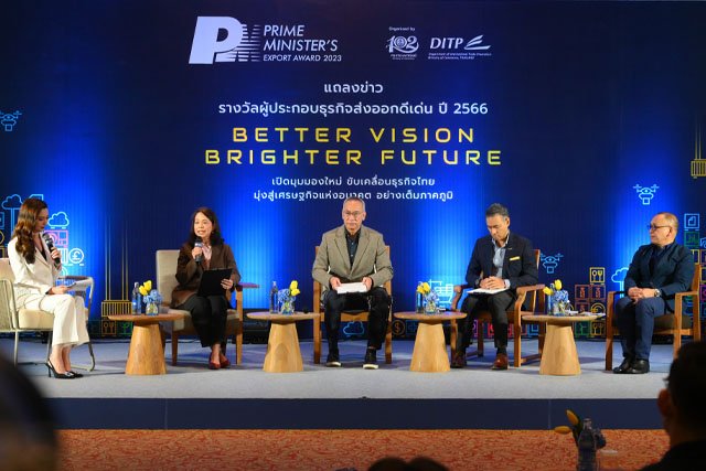 The Ministry of Commerce launches Prime Minister’s Export Award 2023, under a theme of “Better Vision Brighter Future”, with a target to elevate the export sector to reach Asia’s TOP 5 trading nations. Four Award-winners join the stage, sharing their experiences and inspirations in developing world-recognized businesses.