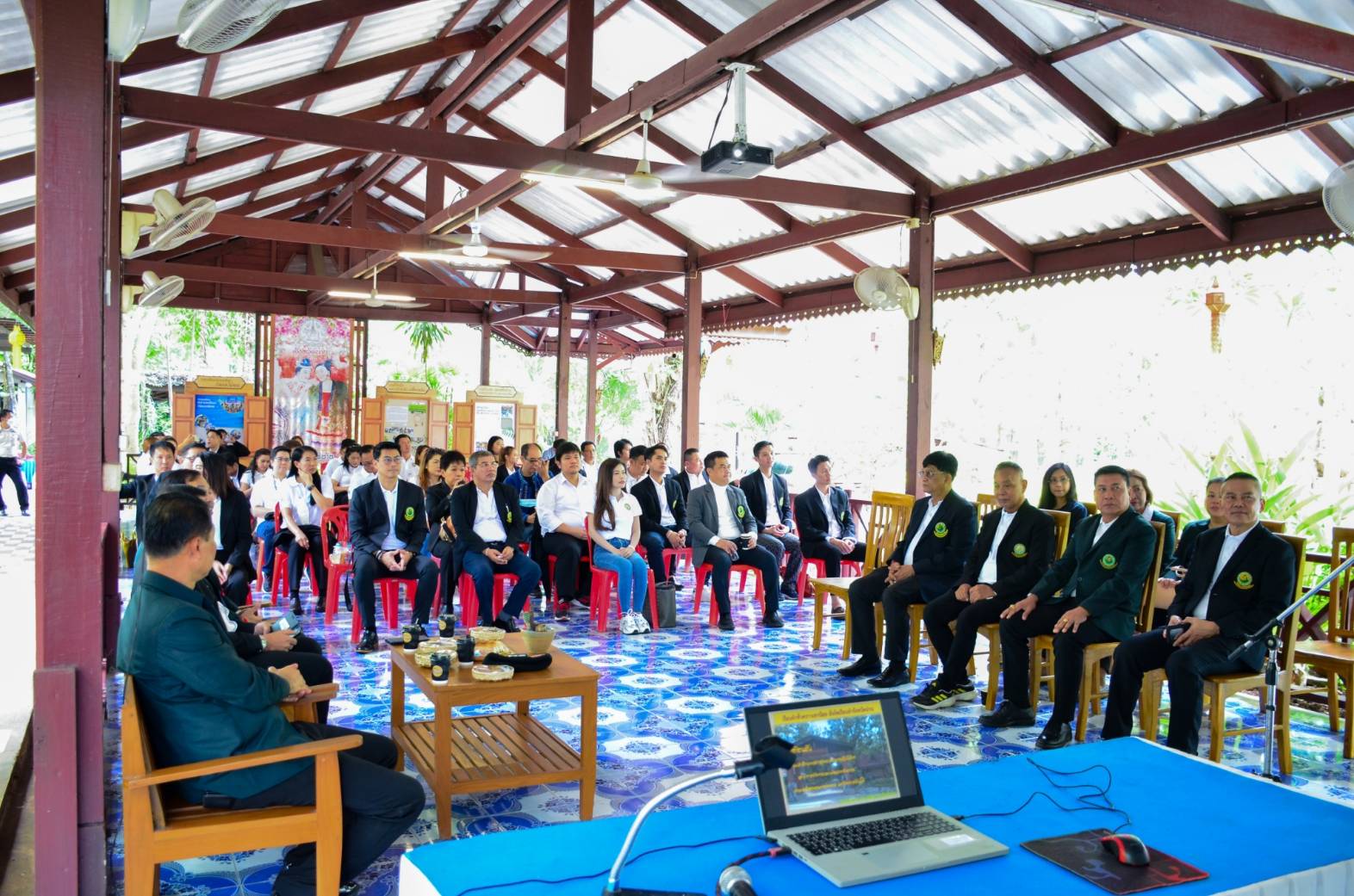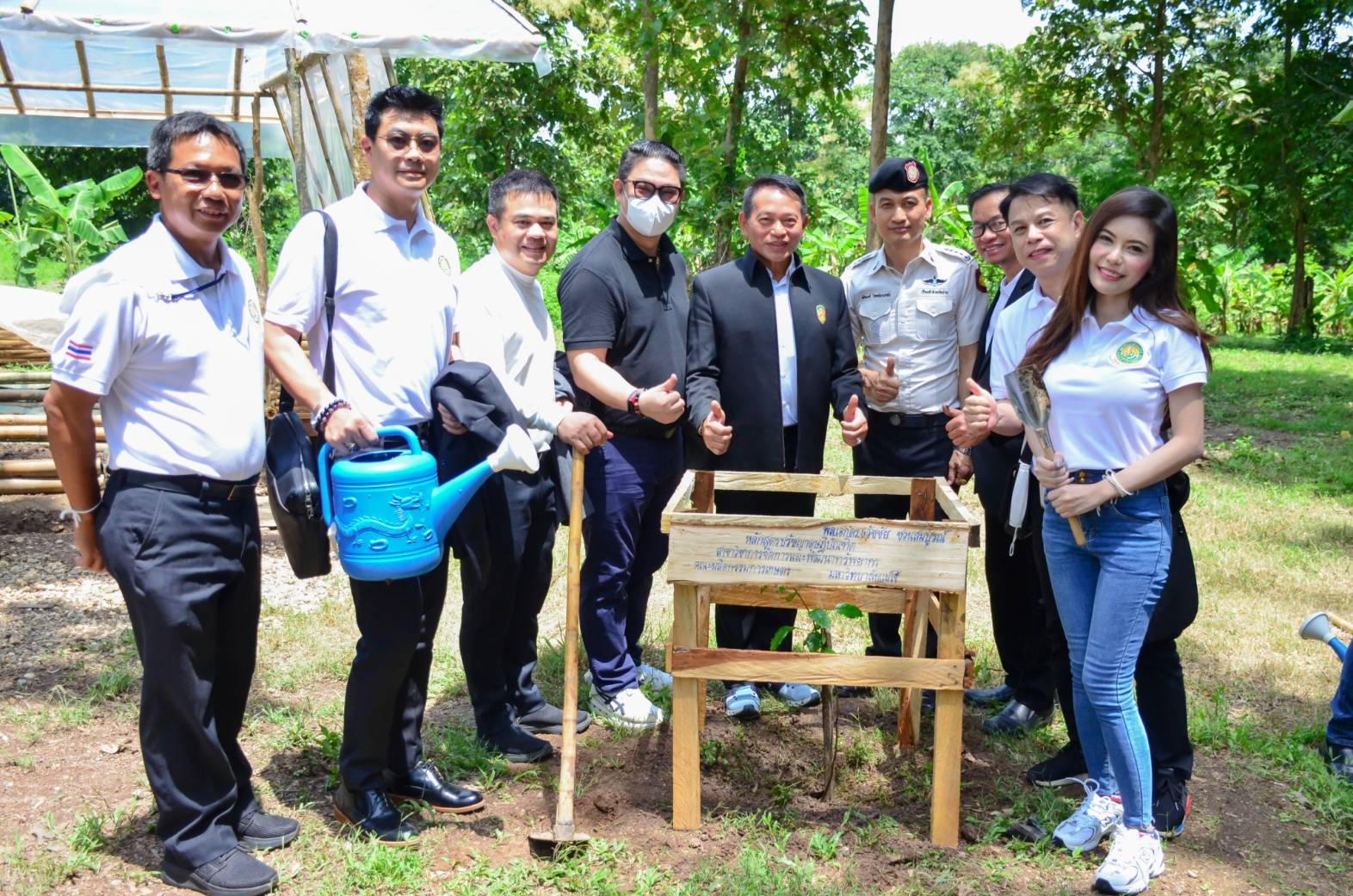 นักศึกษาปริญญาเอก และ คณาจารย์ สาขาวิชาการจัดการและพัฒนาทรัพยากร คณะผลิตกรรมการเกษตร มหาวิทยาลัยแม่โจ้ นำโดย ท่านประธานที่ปรีกษาโครงการ พลเอก ธวัชชัย ชวนสมบูรณ์ และ อาจารย์ ดร.กอบลาภ อารีศรีสม ประธานกรรมการผู้รับผิดชอบหลักสูตร ปรัชญญาดุษฎีบัณฑิตสาขาการจัดการและพัฒนาทรัพยากร คณะผลิตกรรมการเกษตร มหาวิทยาลัยแม่โจ้พร้อมทั้ง ผู้อำนวยการโครงการ