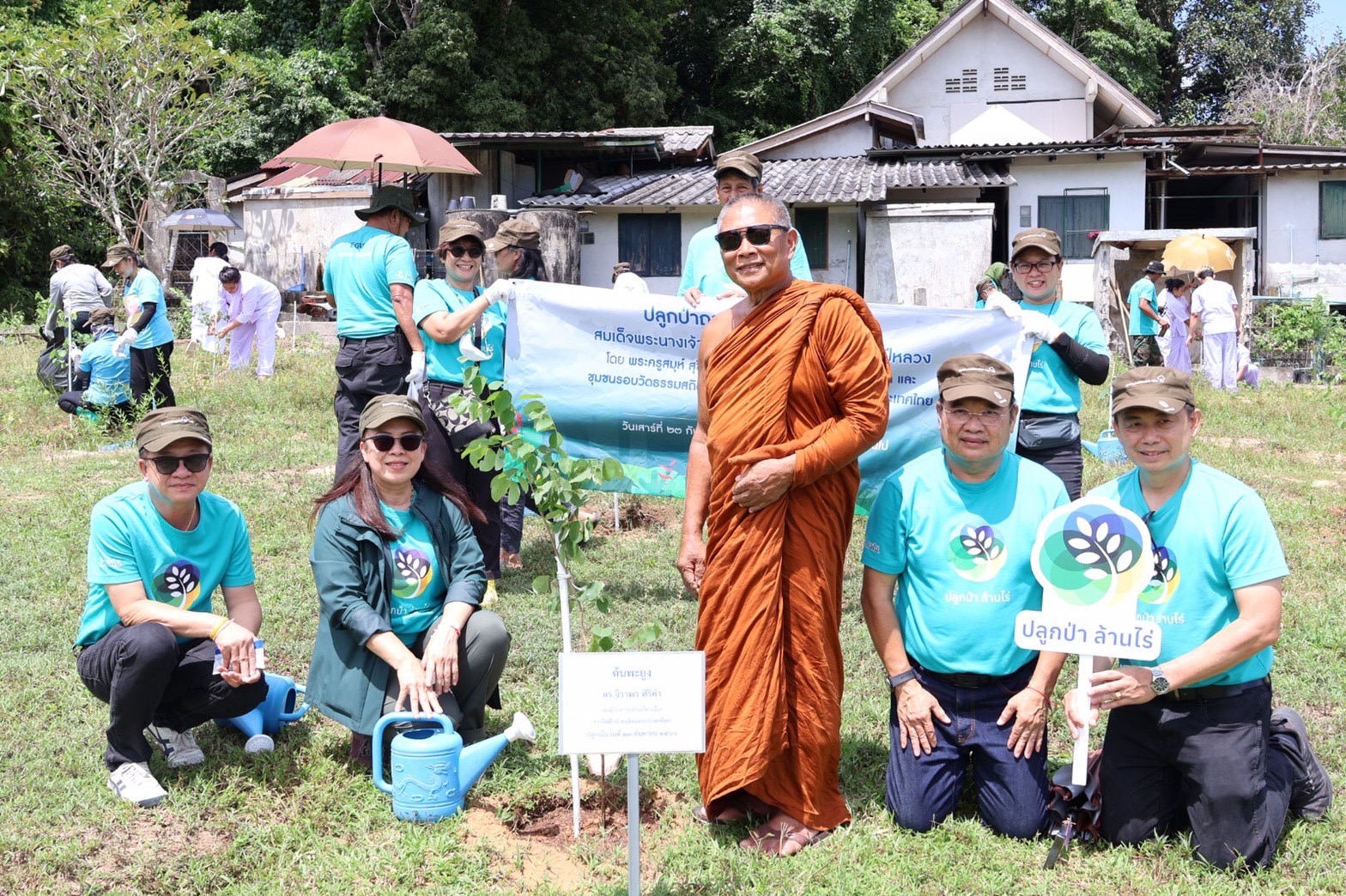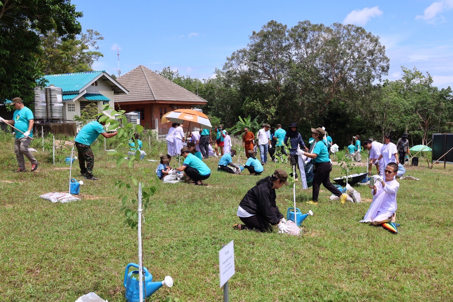 พระครูสมุห์สุชิน ปริปุณโณ เจ้าอาวาสวัดธรรมสถิต ดร.จิราพร ศิริคำ รองผู้ว่าการธุรกิจเกี่ยวเนื่อง การไฟฟ้าฝ่ายผลิตแห่งประเทศไทย (กฟผ.) ผู้นำชุมชน เจ้าหน้าที่หน่วยงานภาครัฐและภาคเอกชน ร่วมกิจกรรมปลูกป่าถวายเป็นพระราชกุศล สมเด็จพระนางเจ้าสิริกิติ์ พระบรมราชินีนาถ พระบรมราชชนนีพันปีหลวง ณ บริเวณจุดปลูกป่าวัดธรรมสถิต ต.สำนักทอง อ.เมืองระยอง จ.ระยอง ภายใต้โครงการปลูกป่าอย่างมีส่วนร่วมของ กฟผ.